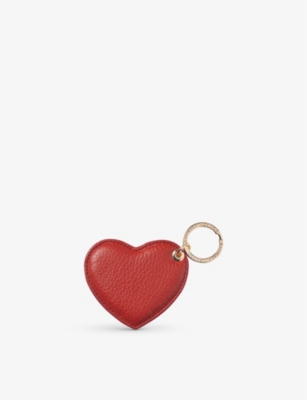 Heart-shaped branded pebbled-leather keyring- Discount price:$43.00