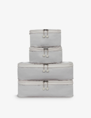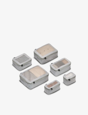 Overcome packing problems with our selection of useful accessories. Zipped packing cubes in a variety of sizes are your suitcase's ideal companion. Made to last from durable materials such as water-resistant nylon, they compress your clothes into organised bundles and promote space saving. For your toiletries, we have transparent pouches that offer easy visibility and hard-shelled vanity cases for maximum protection. Once everything is in your luggage, consider safely securing it with an elasticated belt, padlock or suitcase cover. A premium luggage tag is the ideal finishing touch for your bag to make sure it finds its way back to you in all situations.