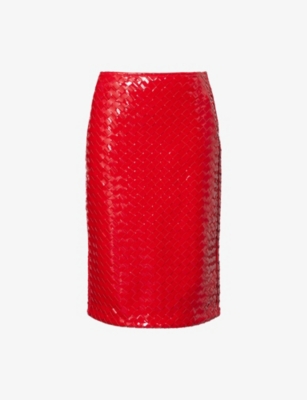 BOTTEGA VENETA: Intrecciato Leather Midi SkirtBOTTEGA VENETA: Intrecciato Leather Midi Skirt