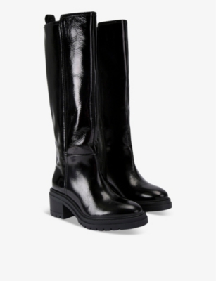 Champion patent-leather block-heel knee-high boots- Discount price:$107.00