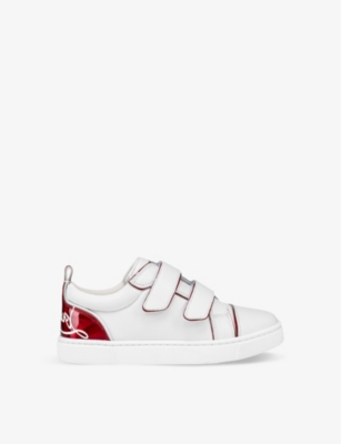 Funnyto logo-print leather low-top trainers 4-9 years