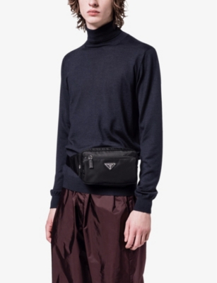 Brand-plaque Re-Nylon and Saffiano-leather belt bag
