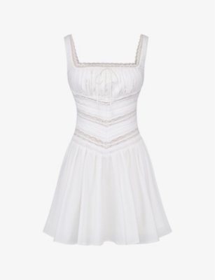 Tiffani square-neck lace-trim stretch-cotton mini dress- Discount price:$118.00
