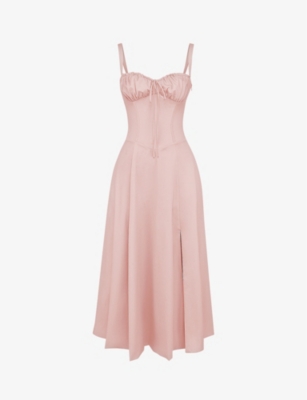 Carmen gathered-cup stretch cotton-blend midi dress- Discount price:$142.00