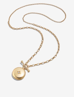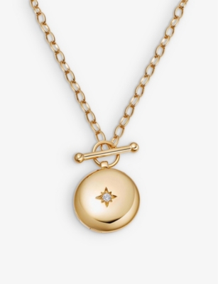 Biography 18ct Yellow Gold Vermeil And White Sapphire T-Bar Locket Necklace- Discount price:$265.00
