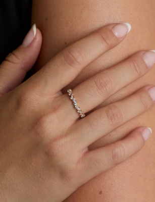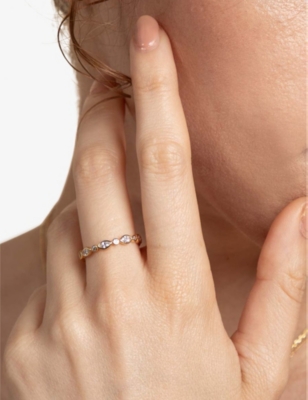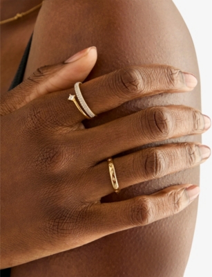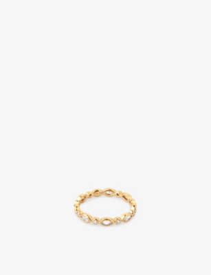 Navette 18ct yellow gold-plated sterling-silver and zirconia band ring- Discount price:$67.00