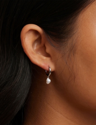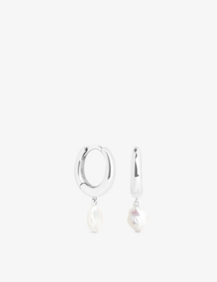 Pearl Charm Rhodium-Plated Sterling-Silver And Freshwater-Pearl Huggie Hoop Earrings- Discount price:$67.00