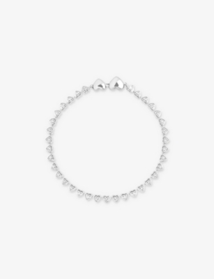 Bezel Heart Rhodium-Plated Brass And Cubic Zirconia Tennis Bracelet- Discount price:$91.00