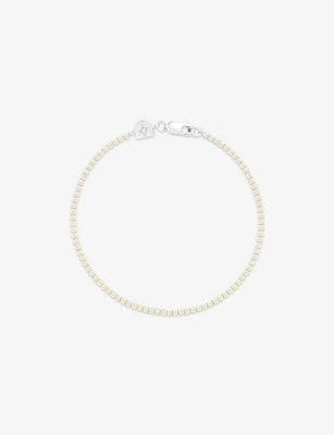 Tennis Chain Rhodium-Plated Brass And Cubic Zirconia Bracelet- Discount price:$82.00