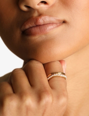 Molten Illusion 18ct Yellow-Gold Plated Sterling-Silver And Pearl Ring- Discount price:$67.00