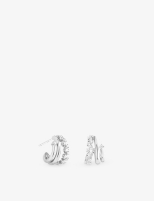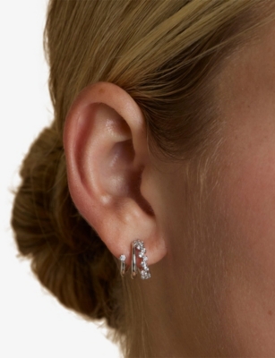 Orbit Pavé Rhodium Plated Sterling-Silver And Cubic Zirconia Hoop Earrings- Discount price:$48.00