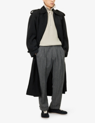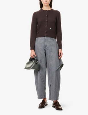 Fruit and vegetables are a fun recurring motif in JW Anderson clothing - look out for large, loosely sketched ones popping up on sweaters, jackets and dresses. The brand also takes inspiration from legends of poetry and art, and regularly peppers its pieces with bright asymmetrical patterns and primary colour schemes. The iconic anchor-inspired logo adorns laces, trims and surfaces. JW Anderson accessories and shoes, meanwhile, provide the opportunity to make a bold impression, whether you're taking a stroll in a pair of heavyweight high-top trainers or finishing off a dressy outfit with a basket-style tote bag.