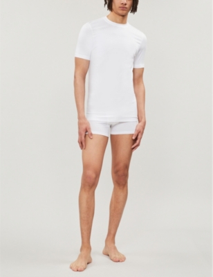 Outfit foundations start with the trusted tee. In our extensive collection of men's designer T-shirts, you'll find a number of different fits and high-quality fabrics. What's more, you can choose from statement designs from your favourite brands, including ones that proudly display their distinctive logos. Will it be plain or printed? Crewneck or collared? Discover the answer here.
