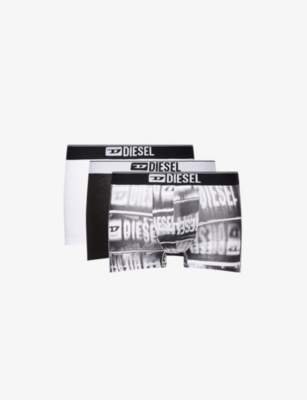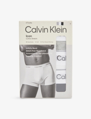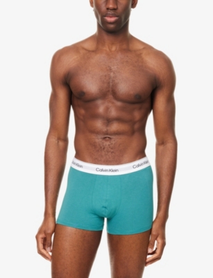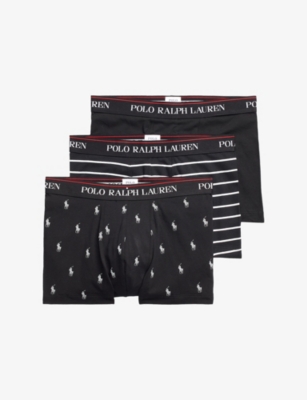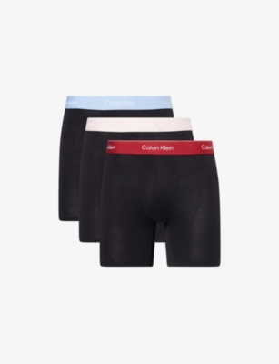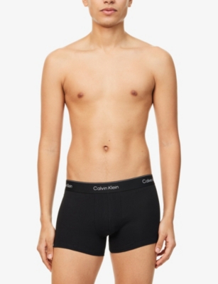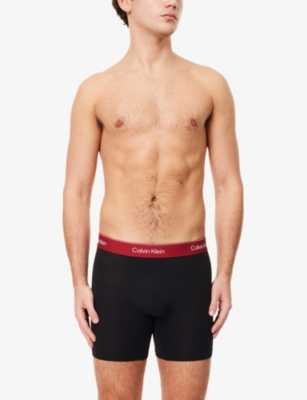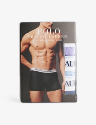 Logo waistband classic-fit stretch-cotton trunks pack of three- Price:$54.00