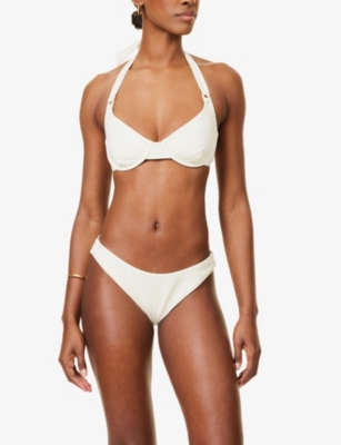 Clovelly Plunge-Neck Stretch-Woven Bikini Top