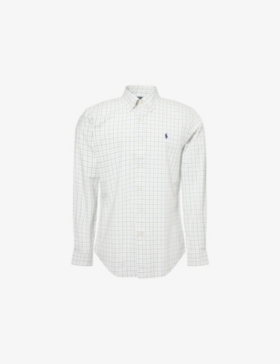 Long-sleeved logo-embroidered custom-fit stretch cotton-poplin shirt- Price:$161.00