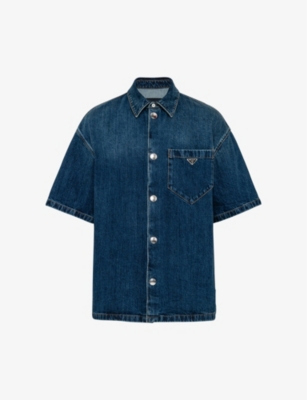 Brand-plaque short-sleeved regular-fit cotton shirt