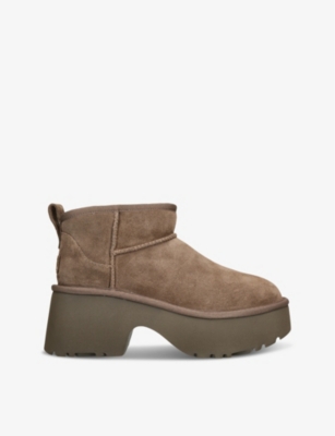 Classic Ultra Mini New Heights suede and shearling heeled ankle boots- Discount price:$114.00