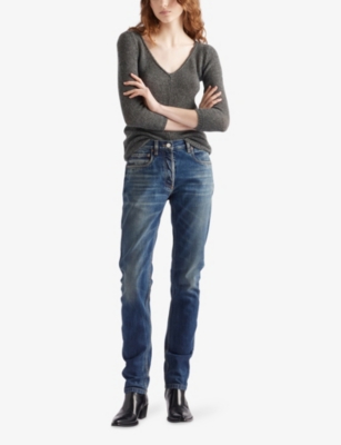 Sloane Skinny brand-patch tapered-leg mid-rise stretch-denim blend jeans- Price:$350.00