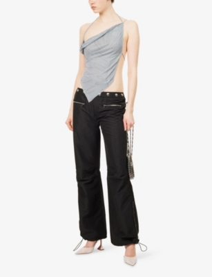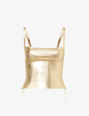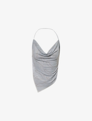 Eye-catching shapes take centre stage in our curation of ladies' sleeveless tops. You'll find options with delicate self-tie straps that bring a sense of romance, as well as strapless pieces with embellished logo branding or all-over velvet textures. Choose a cheerful option in a bright colour such as butter yellow or lime green - ideal for long afternoons spent lounging in the sun.