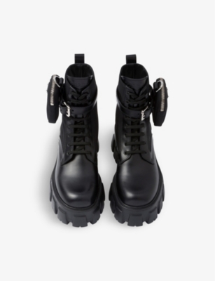 Re-Nylon logo-plaque leather and recycled-nylon heeled boots