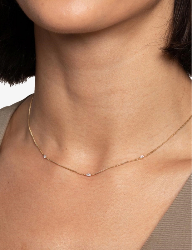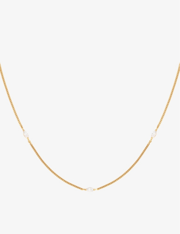 Navette charm 18ct yellow gold-plated sterling-silver and cubic zirconia necklace