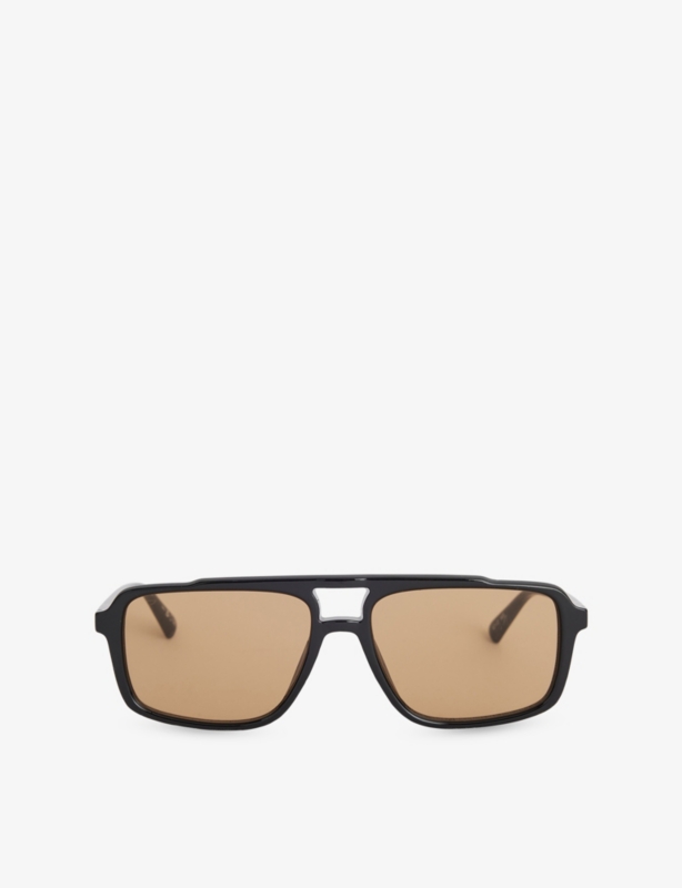 - Full-rim style, branding at temples, square tips, 100% UV protection
