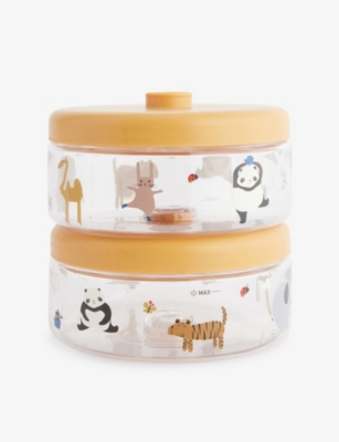 We've chosen this Liewood baby line for its playful Scandi style and durable craftsmanship. You'll find friendly animal faces embroidered into hoods and printed onto sleek tableware. Cosy cotton is used throughout the clothing for warmth and comfort, while streamlined silicone makes cups and bibs easy to wipe down after mealtimes. Neutral colours characterise the collection, and our Project Earth stamp allows you to identify the most planet-friendly options.