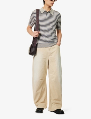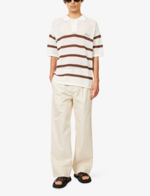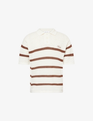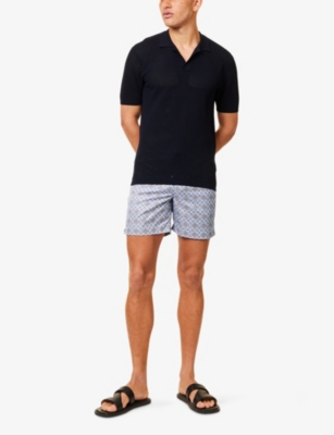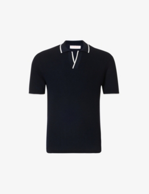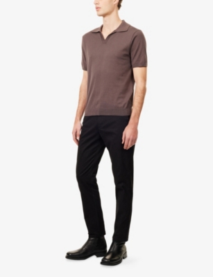 Browse men's cotton polo shirts decorated with flamboyant geometric ornamentation, opulent paisley prints and playful florals. You'll find breathable cotton blends and open-collar necklines that are well suited to warmer climes. Laid-back pieces are whipped up in cosy towelling and finished with subtle stitching, while slim-fitting knitted silhouettes are spun from multicoloured threads arranged in abstract waves and neat check patterns.