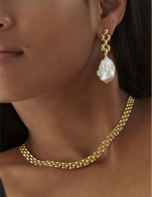 Nura supersized-pearl 18ct gold-plated vermeil sterling-silver necklace- Price:€325.00