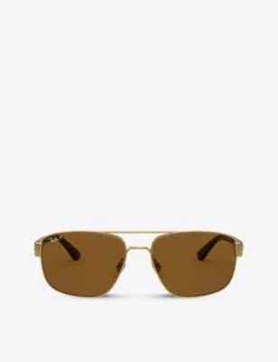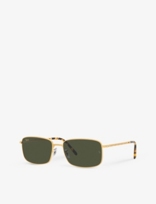 RB3717 rectangle-frame polished gold-metal sunglasses