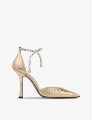 Paparazzi Tie Crystal-Embellished Metallic Faux-Leather Heels- Discount price:€111.00