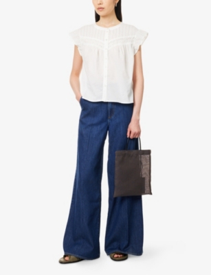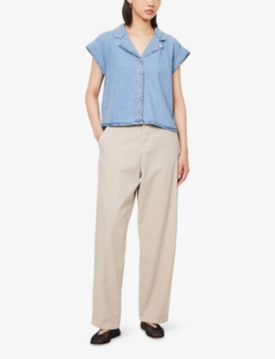 Discover neon brights and illustrative motifs, as well as stripes and floral prints. You'll find tops are flourished with pretty details, including puff shoulders, peplum hems and lace detailing. When the diary dictates brunch, a party or a shopping date, you'll reach for your favourite style time and again. Materials range from stretchy woven fabrics to organic cotton and summer-ready linen. Explore a variety of shapes, from boxy cropped silhouettes to relaxed, button-down styles. Our smart selection of short-sleeved tops can easily be worn with tailored separates for your nine-to-five (and then some).