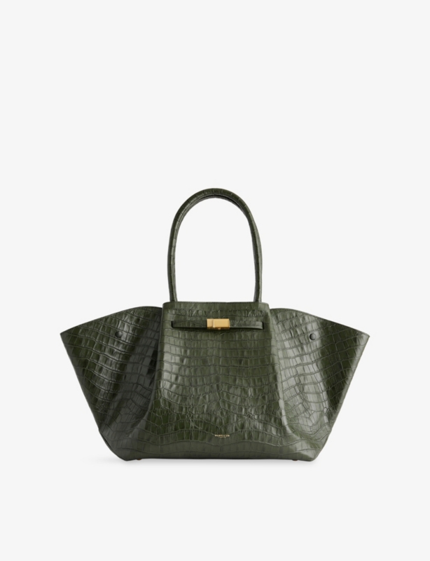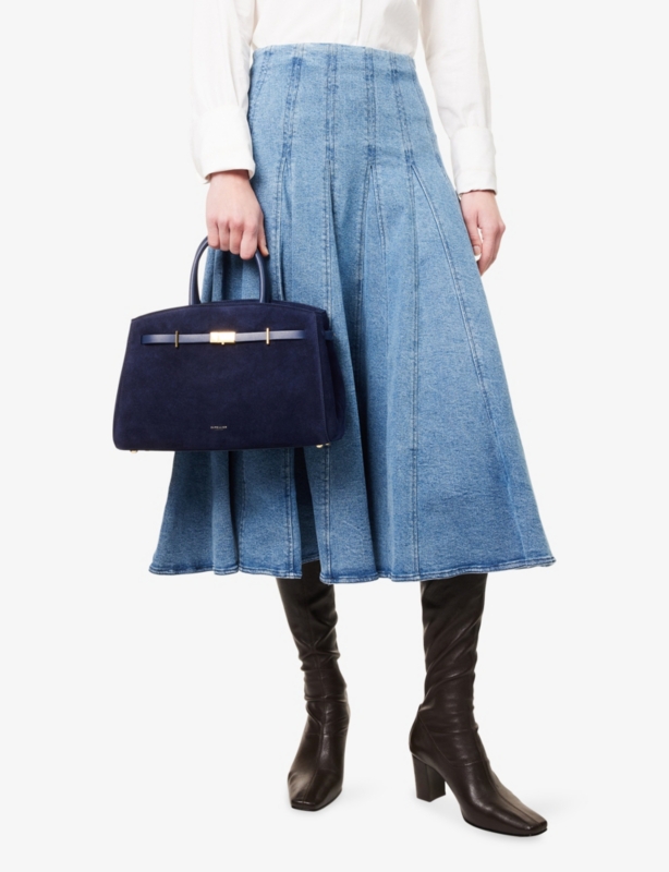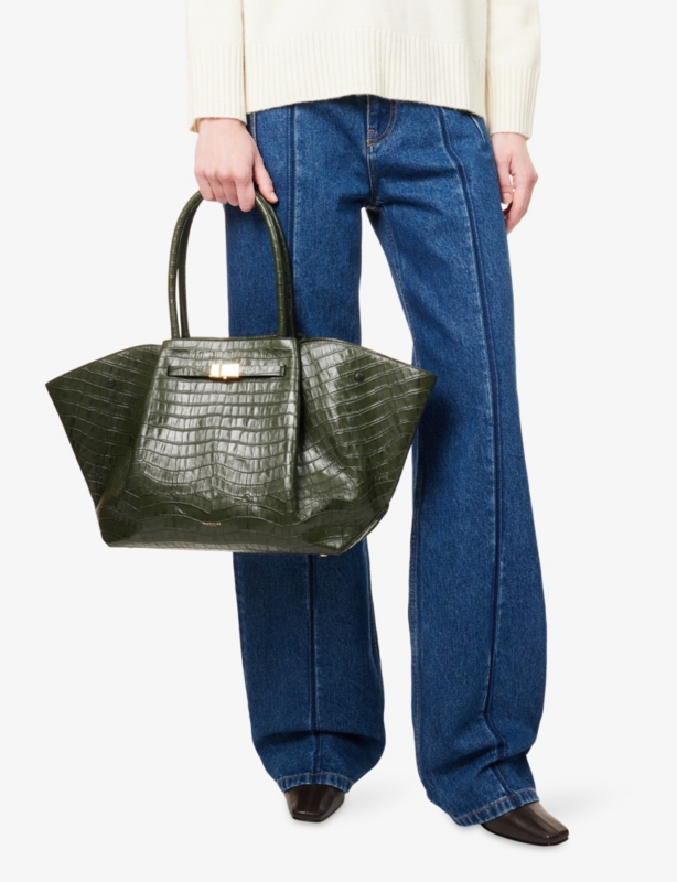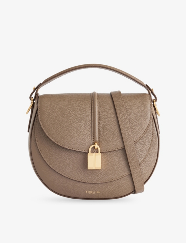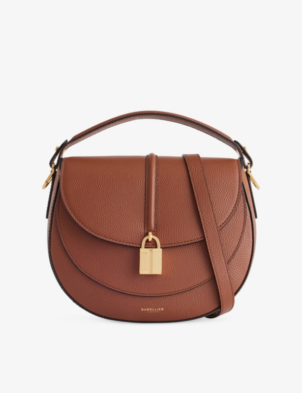 - Double top handles, detachable adjustable shoulder strap, push-lock plaque and foiled branding at front, four protective feet at base, all over grained leather, gold-toned hardware, one main compartment, internal zip and slip pockets, internal foiled branding, fully lined