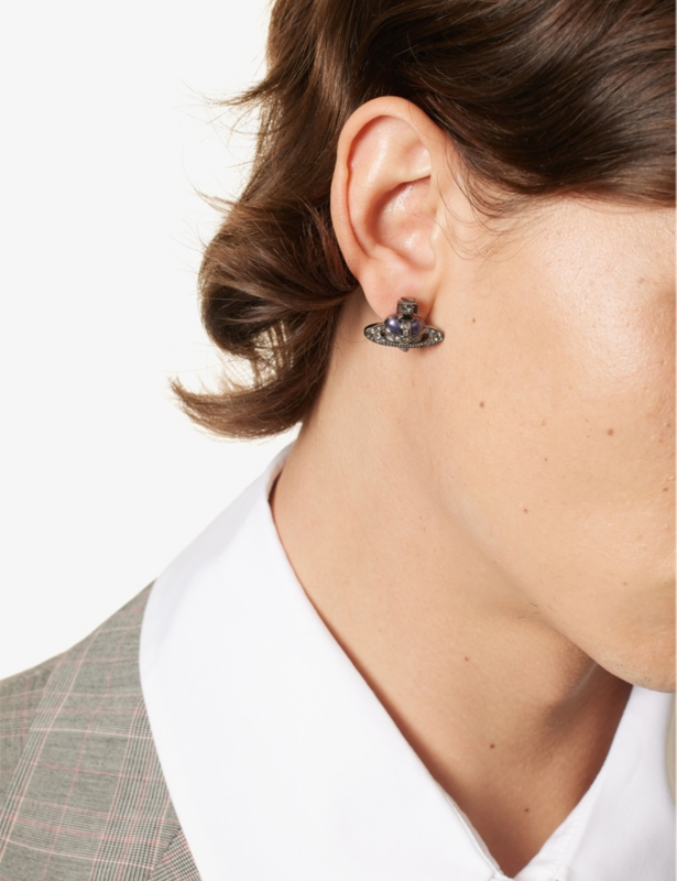 Ever wondered the meaning behind Vivienne Westwood Jewellery's signature logo? We'll tell you. It represents the eccentric designer's aim to take tradition (the Orb resembles the Sovereign's Orb, one of the British crown jewels) into the future (the futuristic feel comes courtesy of the satellite rings). Now shorthand for the label's aesthetic, it's been studded with twinkling Swarovski crystals and suspended on a silver-tone chain to create the Bas Relief necklace.