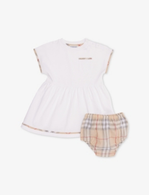 From newborn bib sets to toddlers' dresses and teen tracksuits, you'll find clothes for all ages in our Burberry kidswear selection. Young ones' needs are carefully considered with gentle cotton, stretchy waistbands and zip-free pull-on trousers. Speed up the mornings with buttoned shoulder fastenings for easy dressing, or simplify layering with a snuggly cardigan or hoodie.