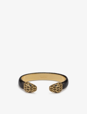 Serpenti Forever leather and yellow gold-plated brass bracelet- Price:$800.00