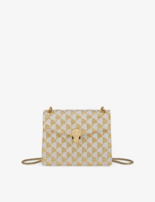 Unbridled creativity and opulence are the foundations of the Bvlgari brand. The label was founded in Rome in 1884 by Greek silversmith Sotirio Bulgari, who once delighted tourists with his intricate hand-made ornaments. Over the decades, and with the help of his sons, his company developed a distinctive style with its vibrant colours and jewel-encrusted arrangements. In more recent years, Bvlgari has expanded into creating a wide array of accessories with that same artisan craftsmanship still at its heart. You'll spot the signature snake motif slithering through our Bvlgari online collection as part of the Serpenti range. From watches that coil around your wrist to bags with serpent clasps, the theme is evidence that the brand's original artistry has survived the generations. Sculpted from glittering gold and scattered with diamonds, we love the powerful and seductive quality that the unique shaping brings to each piece. Once you've picked your jewellery, it's time to turn to a sensual fragrance. Shop Bvlgari scents with light jasmine and sweet rose, or choose an earthy eau de parfum for him with notes of cedarwood and coriander. Don't forget to slip on a pair of statement sunglasses before you leave the house – discover eyewear including cat-eye lenses and shiny frames that'll protect your eyes from the sun.