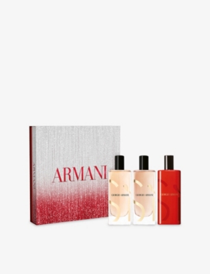 Explore Giorgio Armani fragrances, cosmetics and clothing for men and women. You might spot jackets and trousers rendered in iridescent fabric with clean-cut lines and asymmetric details. T-shirts keep things simple, save for their raised piping or stitched-on pockets. We have impeccable accessories too, such as sunglasses with slim, gold-toned frames, and silk scarves printed with tasteful logo motifs.