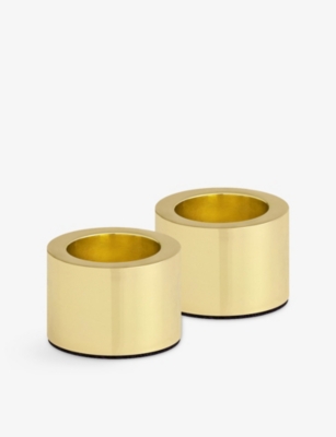 2025 Christmas Taper 18ct Yellow-Gold Stainless-Steel And Brass Candleholders- Price:$60.00