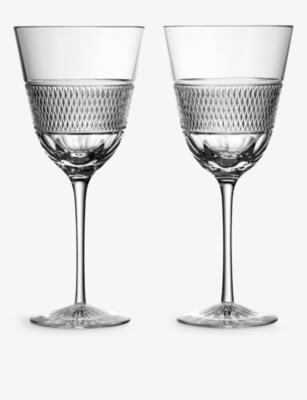 Impress your guests at your next gathering with our striking range of luxury wine glasses. Choose a long-stemmed, unadorned glass for a classic shape and style, or opt for lace designs or wedge-cut embellishments to add a hint of personality. Depart from the norm with a stemless option, or pick one accented with subtle colour. A table laid for outdoor drinks will look especially inviting accessorised with crystal-glass wine goblets - iridescent pearl glassware can add a touch of shimmer to a dinner party tablescape, too.