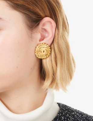 Pre-Loved Chanel CC Round Metal Gold-Plated Clip-On Earrings- Price:$755.00