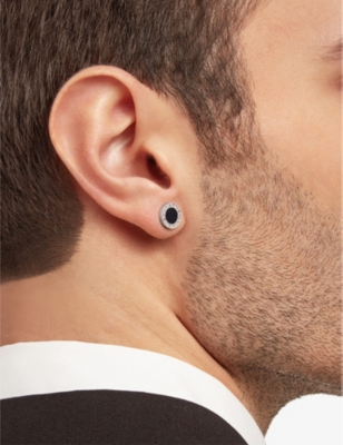 Our selection includes pieces by avant-garde designers, as well as classic jewellers. Pick your metal of choice, from the cool elegance of rhodium to warm and glossy gold. Men's silver earrings include elaborately detailed hoops as well as studs with witty pop-culture references. Men's hoop earrings range from simple curves to lavishly embellished options hand-crafted by up-and-coming young jewellers.