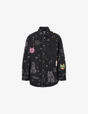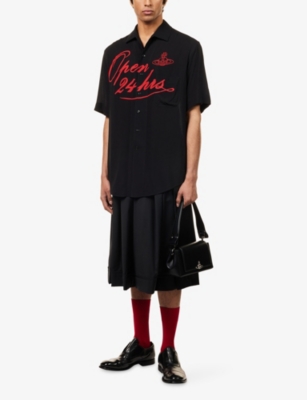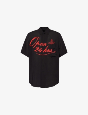 Anti-wrinkle text-print regular-fit cotton shirt- Discount price:$83.00