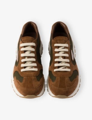 When it comes to Prada menswear, look to the oversized outerwear, lined with glimpses of the brand's triangle plaque. Layer it over a smart neutral jumper - they come in a range of super-soft mixes, with the iconic logo nestled at the bottom or on the chest. In a generous mood? If you're looking to find a gift from the beloved designer, then why not opt for a Prada leather belt? Or purchase a keyring to add a hint of glamour to their everyday. You'll find plenty of luxury material choices, too, such as cashmere blends and Saffiano leather, a tactile and textured option with resistance qualities. It's from one of Italy's most famous tanneries and was invented by Mario Prada - the company's founder and original designer.