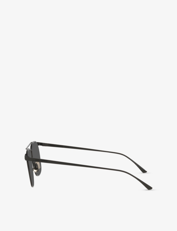 Tinted lenses, engraved logo on external arm