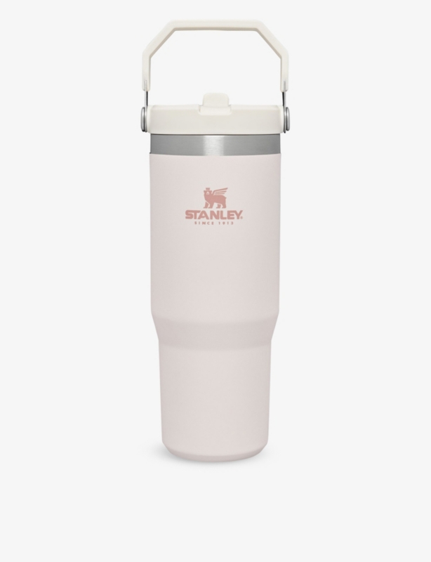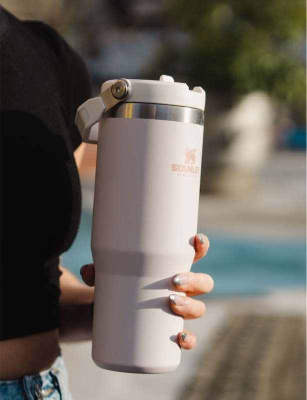 - Branded tumbler, leakproof, flip straw, ergonomic handle, keeps liquids cold for 12 hours and iced for 28 hours