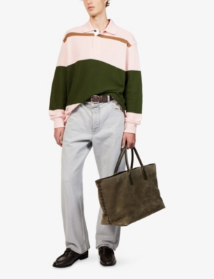 Our selection of Bottega Veneta clothing is brimming with statement-making pieces. Like the accessories collection, it is a fine display of craftsmanship made modern. For instance, intarsia knitted jumpers feature meticulous graphics, jeans are cut with the perfectly slim silhouettes of fine tailoring and engraved hardware embellishments enrich shirt collars. For casual weekends, opt for super-soft jogging bottoms made with plenty of stretch for maximum comfort.