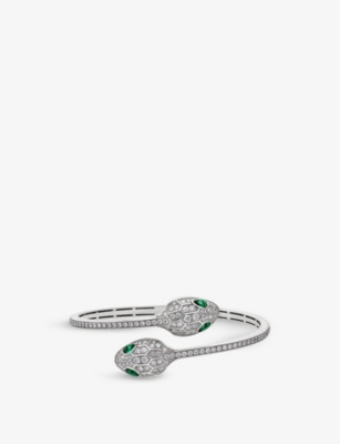 Serpenti Tubolari 18ct white-gold, 3.89ct diamond and 0.26ct emerald bracelet- Price:$73,000.00