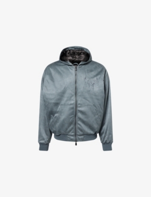 CASABLANCA: Logo-Patch Satin Bomber JacketCASABLANCA: Logo-Patch Satin Bomber Jacket